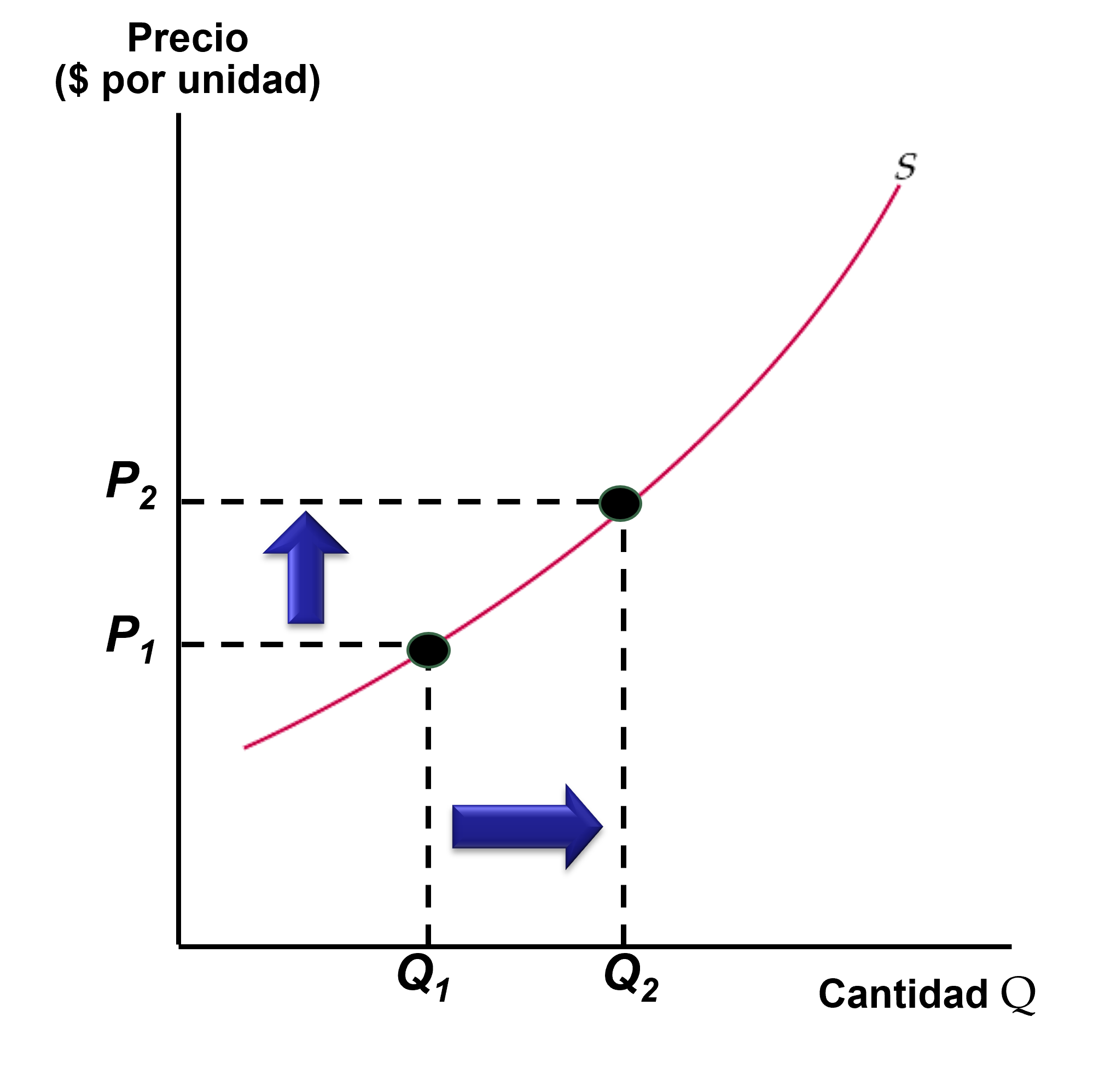 Variaciones o cambios en el precio se reflejan a trav'es de movimientos en la curva de oferta.
