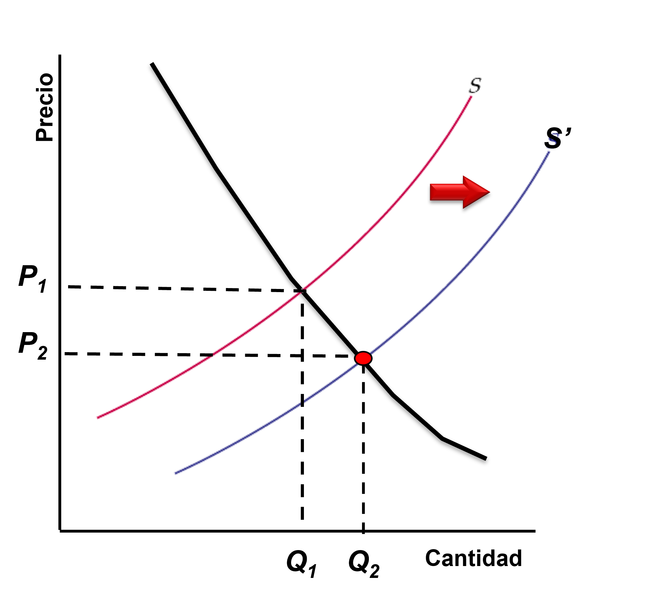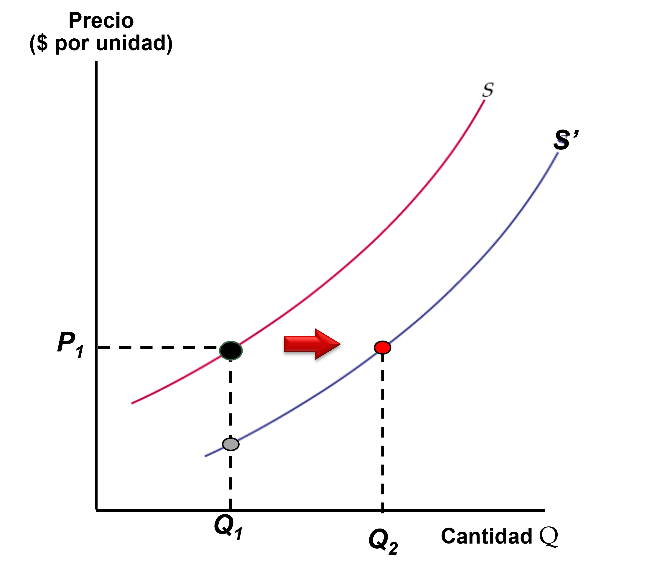Nuevamente, el aumento en la oferta puede estar asociado, por ejemplo, a una reducción en el costo de los insumos.