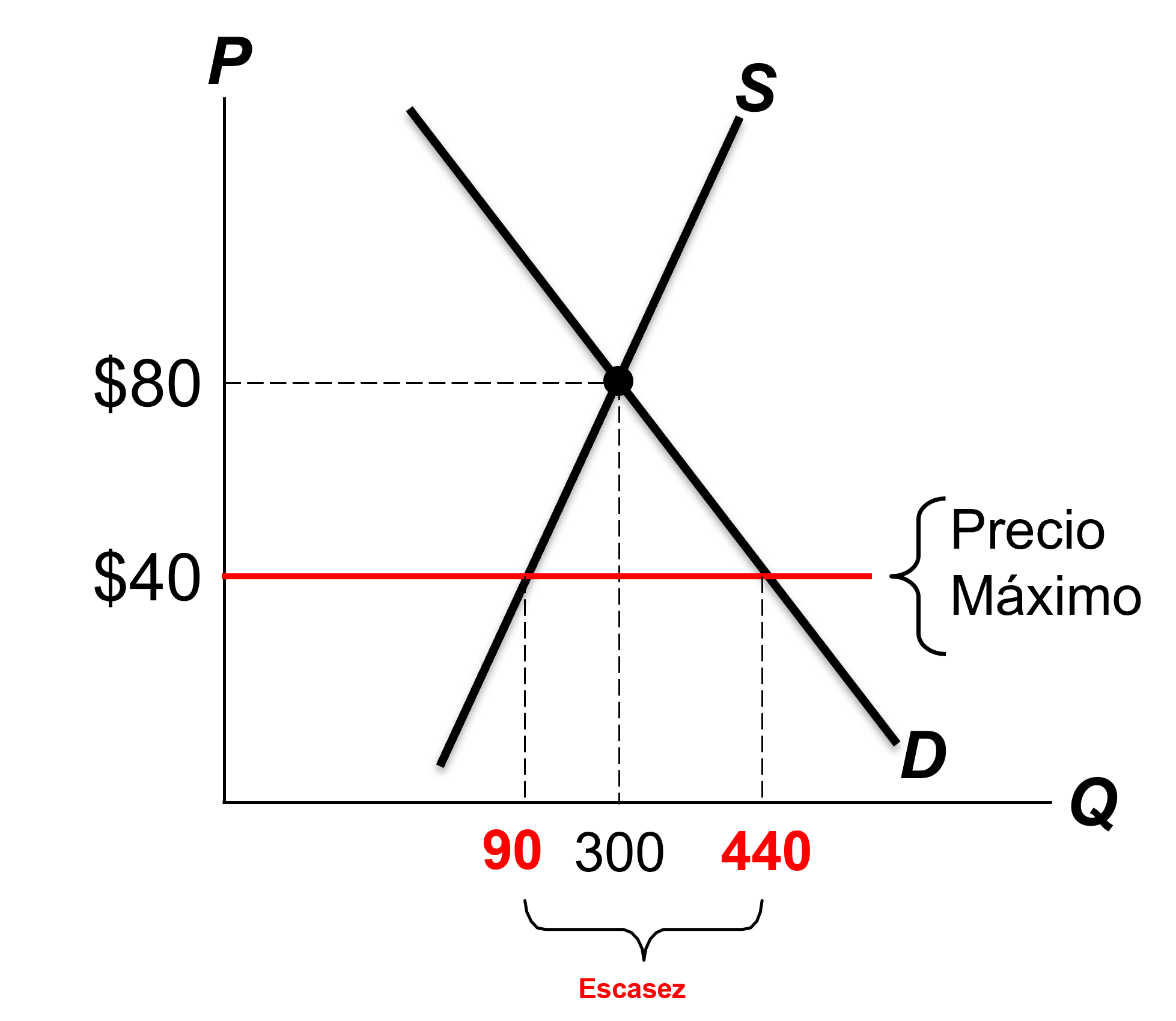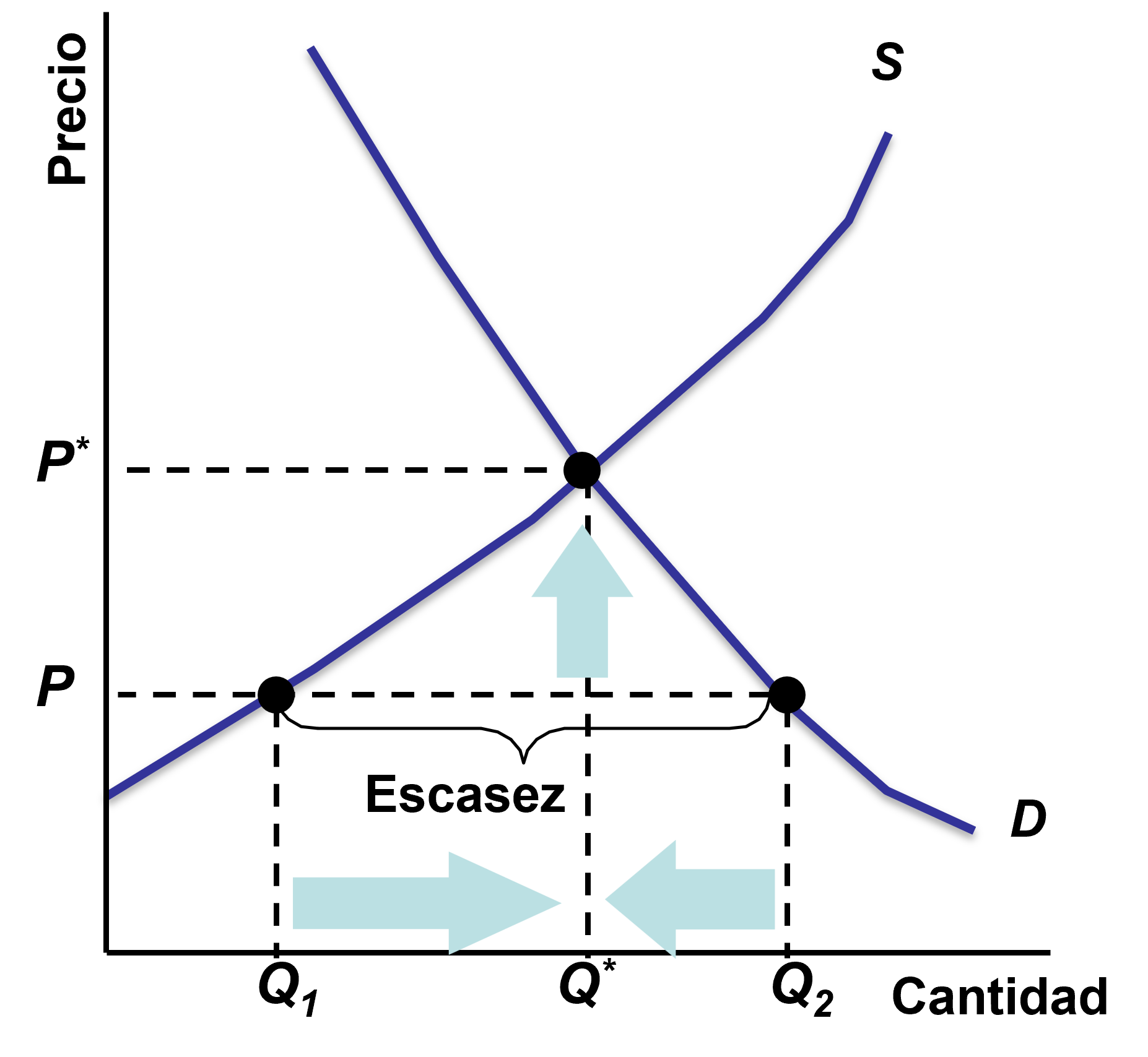 Escasez: \(Q^d>Q^s\)