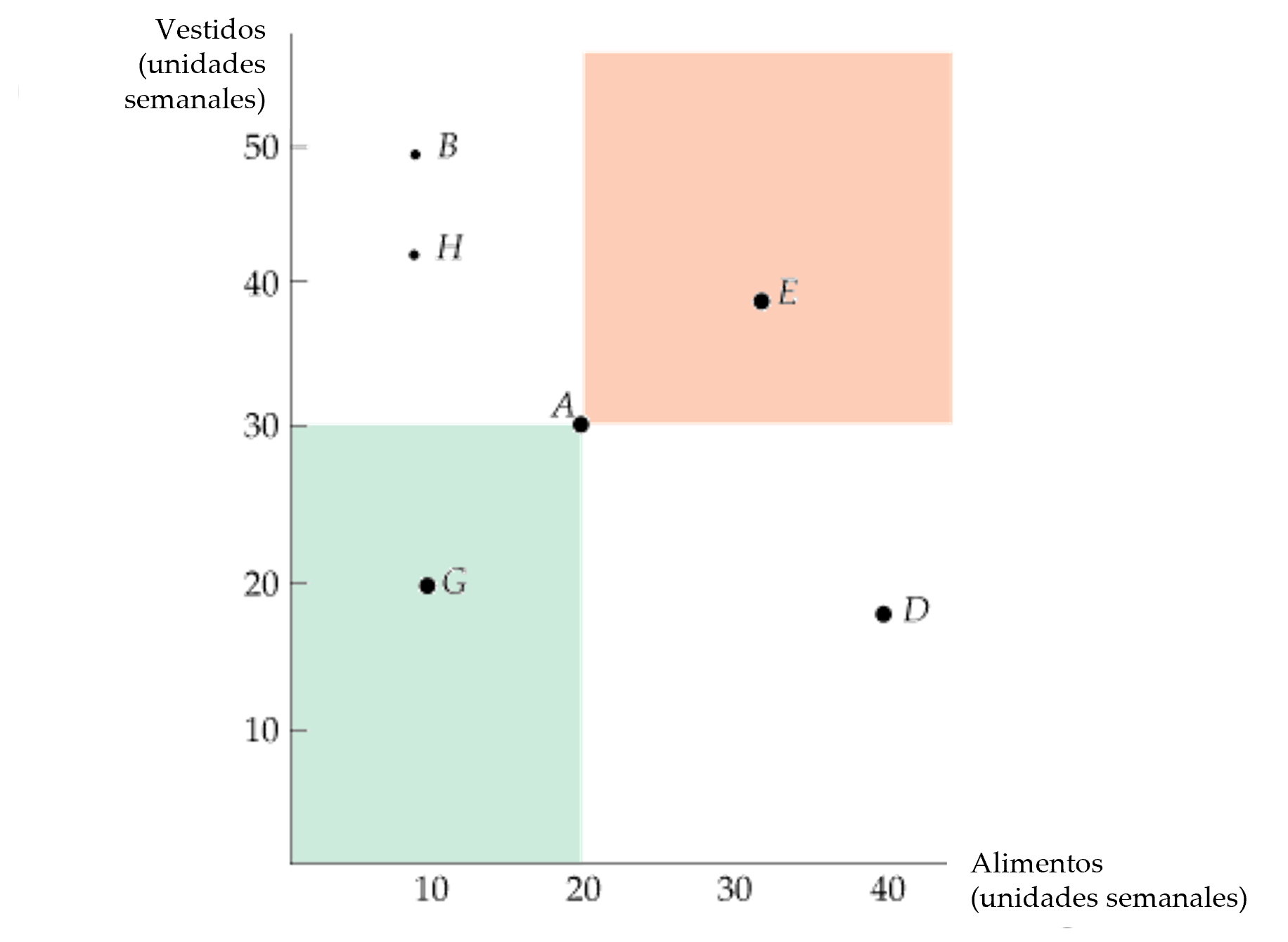 Supongamos que le preguntamos a un consumidor si prefiere una cesta (o carro) de mercado, con cierta combinación de bienes, sobre otra.