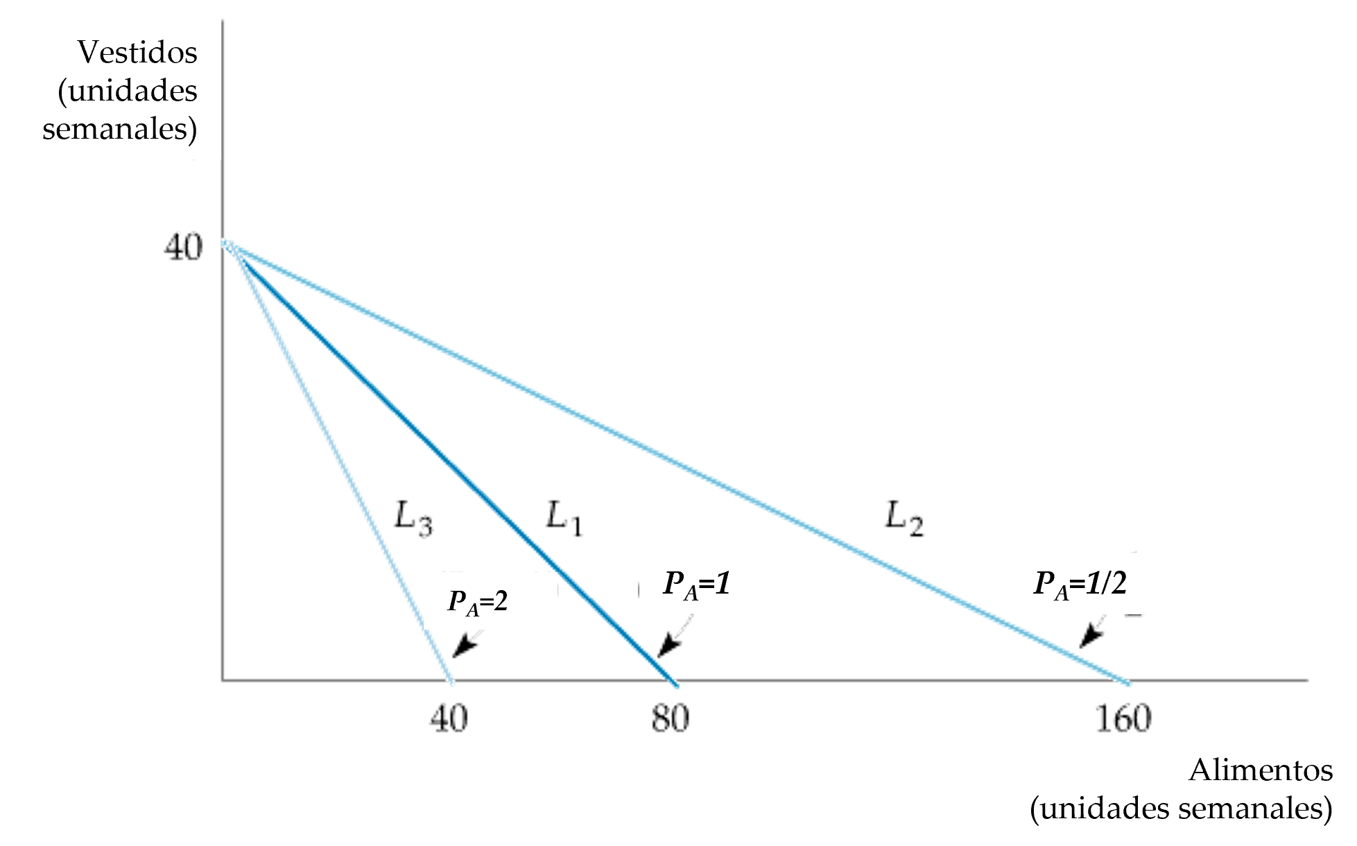 Figura: Efectos de una Variación de un Precio en la Recta Presupuestaria