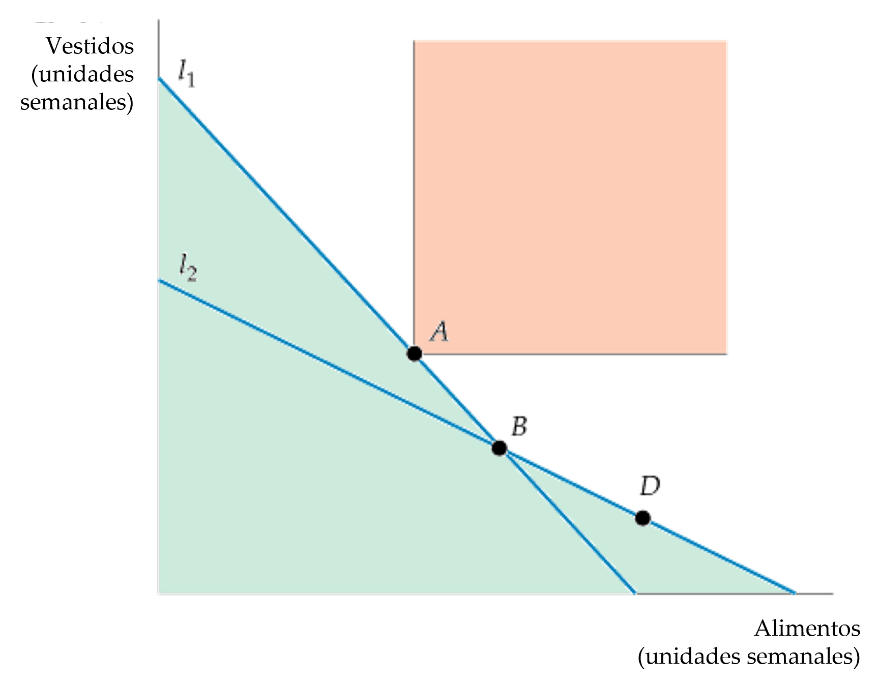Soluciones de Esquina Situación en que la relación marginal de sustitución de un bien de una cesta elegida no es igual a la pendiente de la recta presupuestaria.