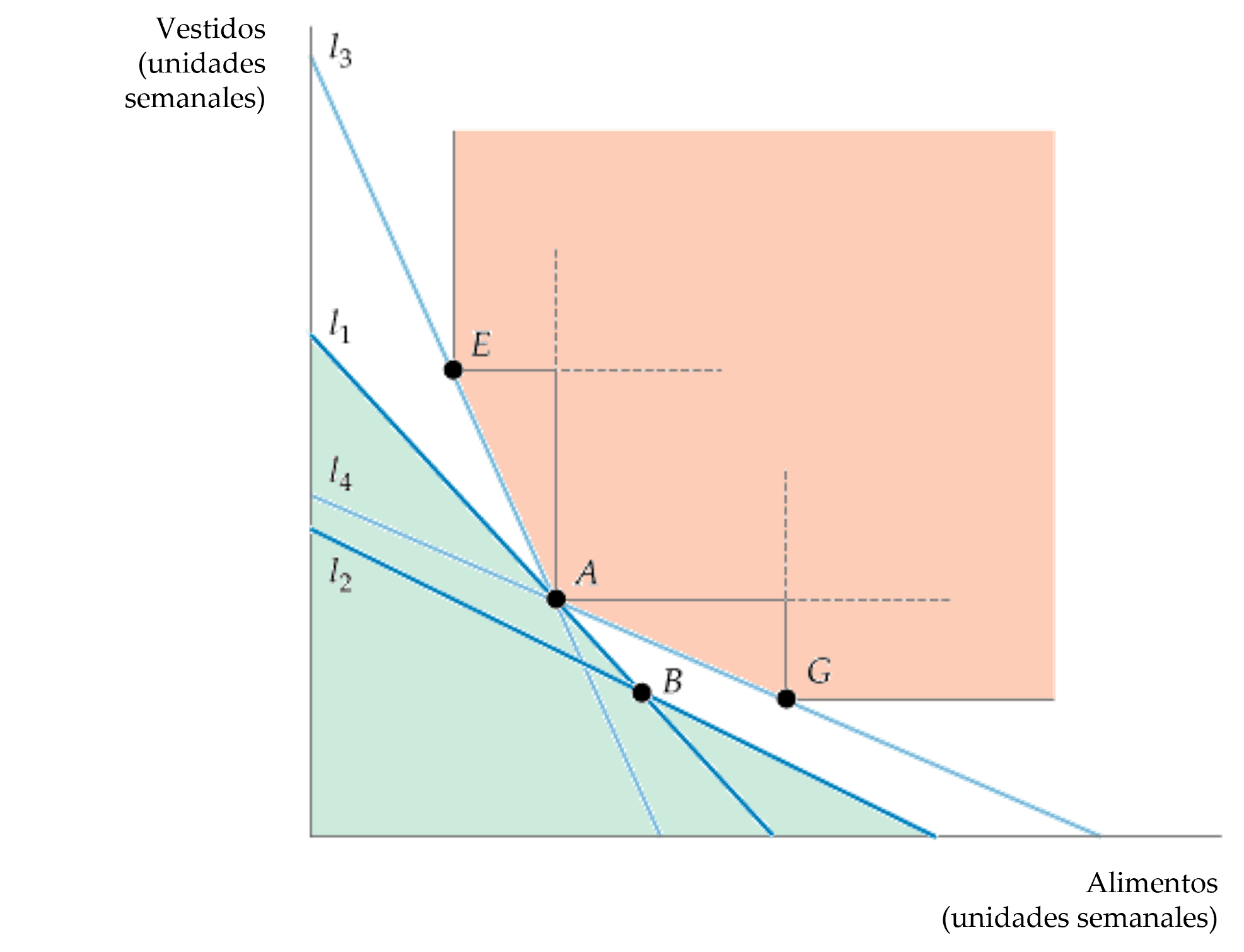 Figura: La Preferencia Revelada con Cuatro Rectas Presupuestarias