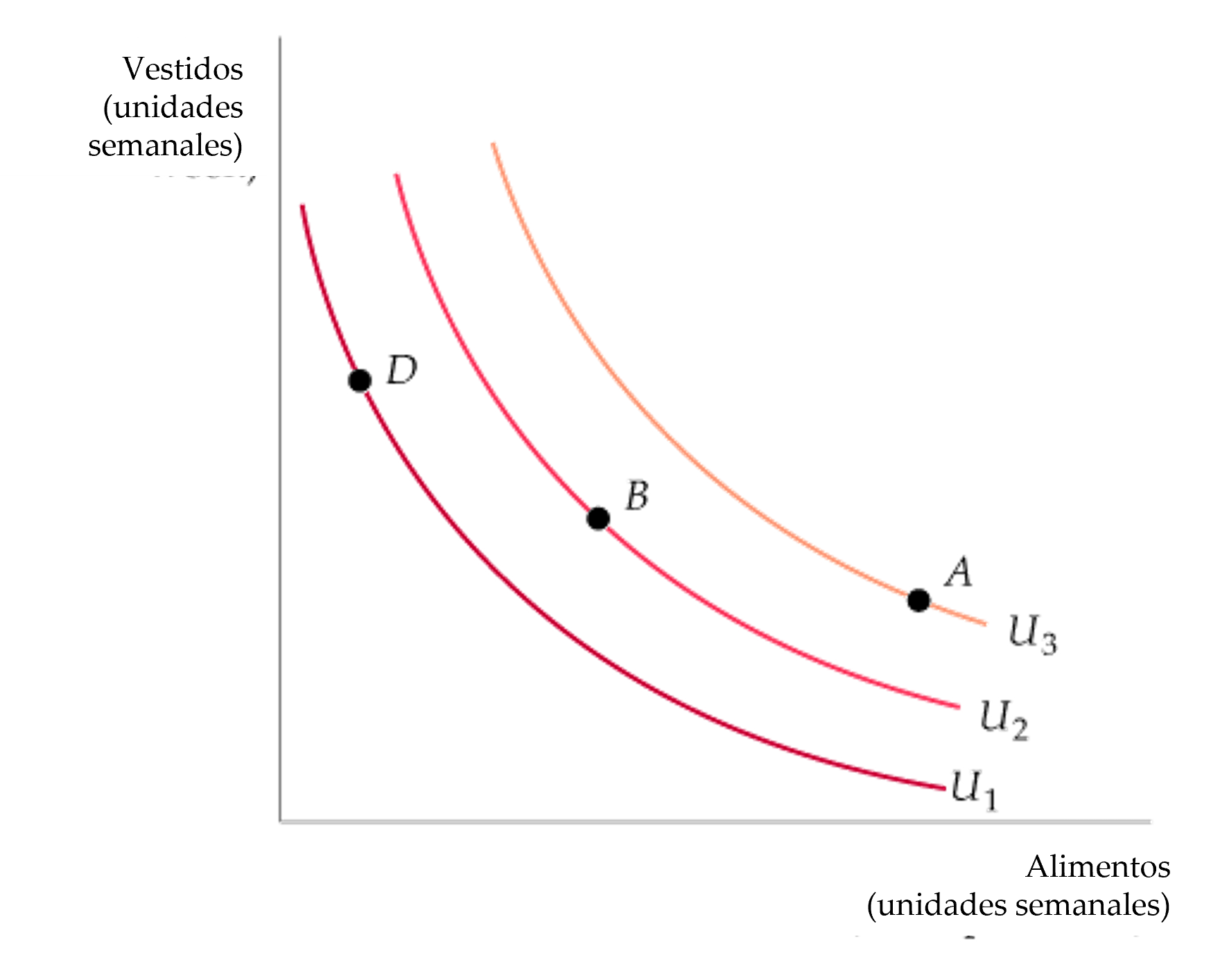 Mapa de Curva de Indiferencia gráfico que contiene un conjunto de curvas de inderencia que muestran las cestas de mercado en que es indeferente un consumidor.