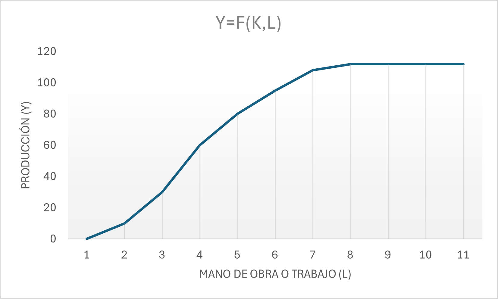 Función de producción: Función que muestra el nivel de producción máximo que puede obtener la empresa con cada combinación específica de factores.
