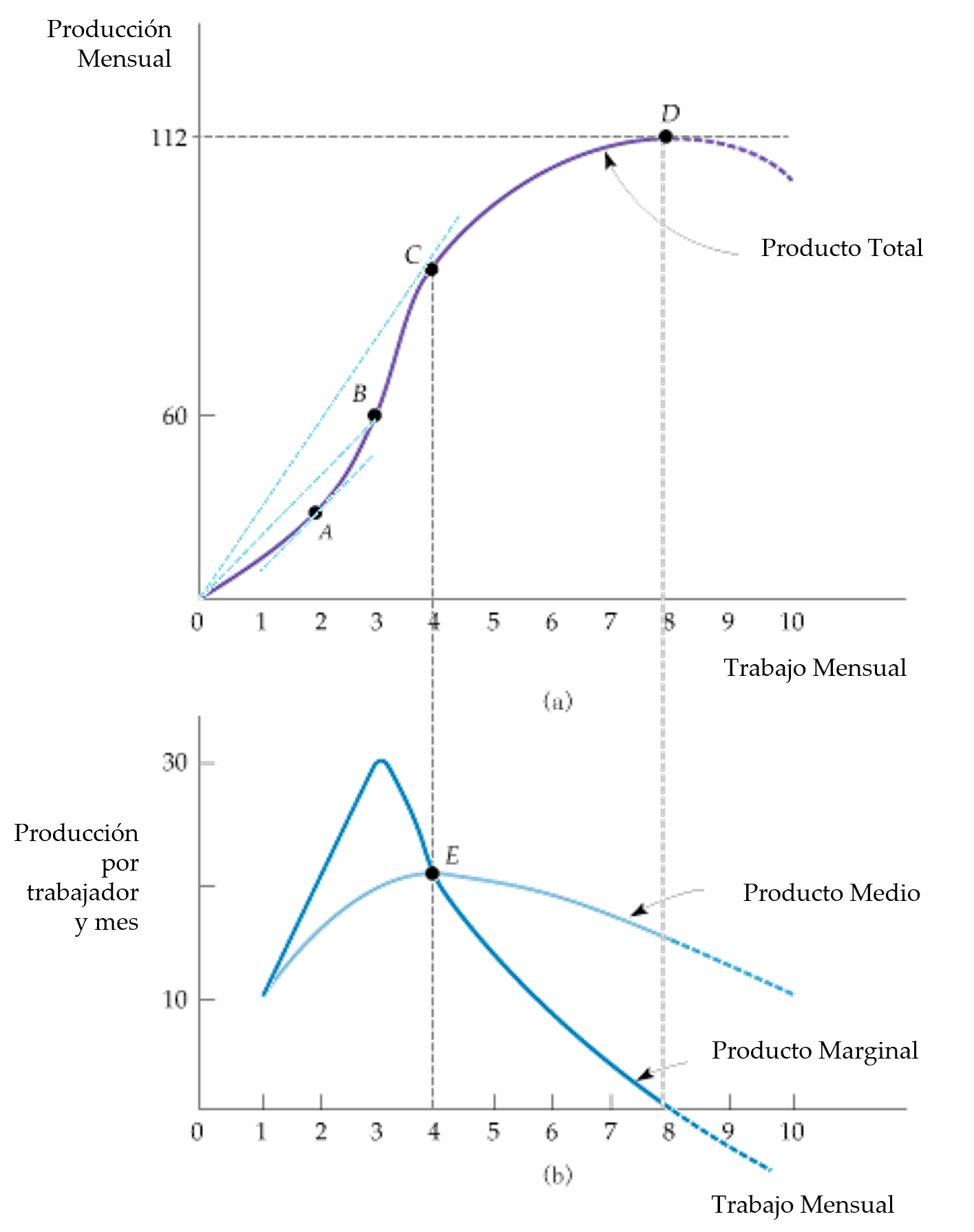 Las funciones de producción de corto plazo, de producto medio y marginals son