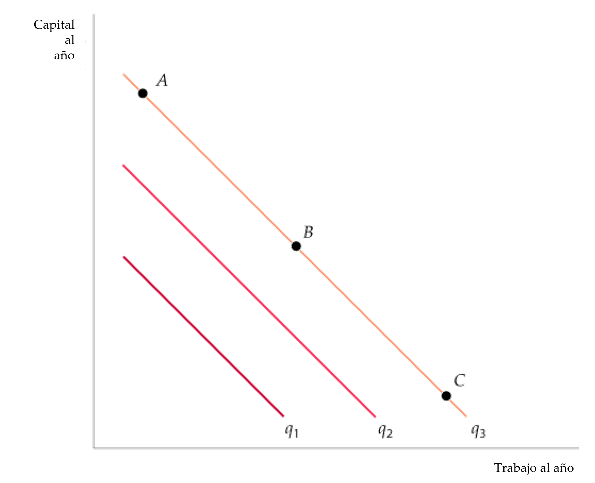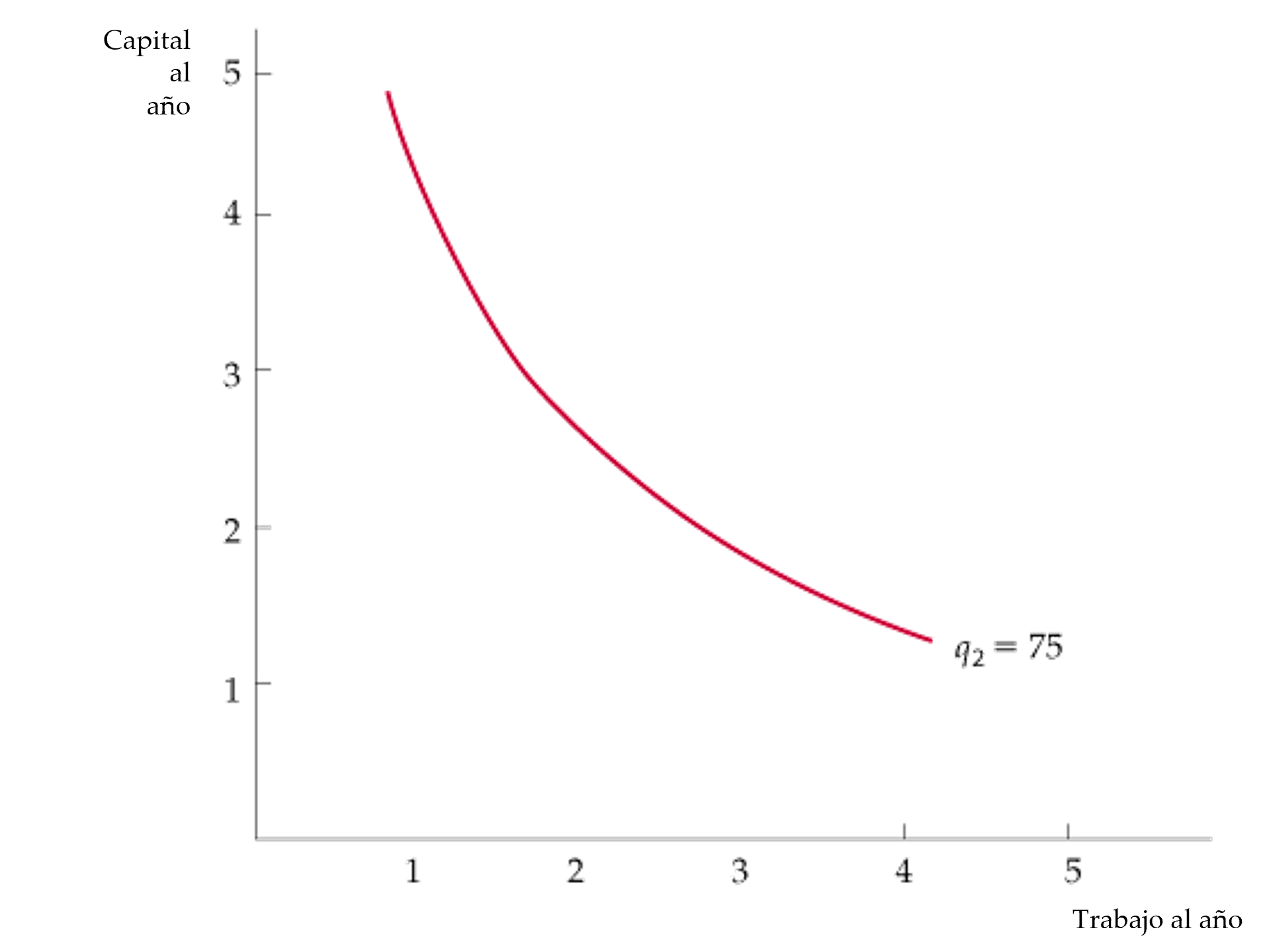 isocuanta: curva que muestra todas las combinaciones posibles de factores que generan el mismo nivel de producción.