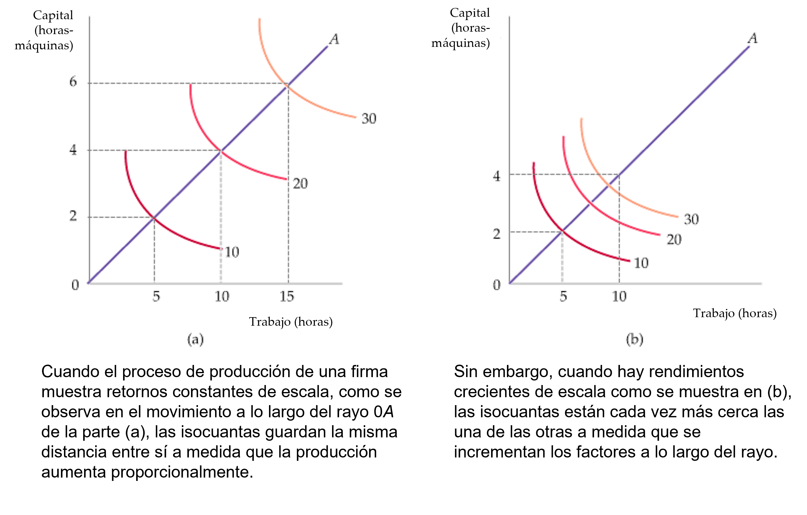 rendimientos de escala: tasa en que se incrementa la producción cuando se incrementan los factores proporcionalmente.