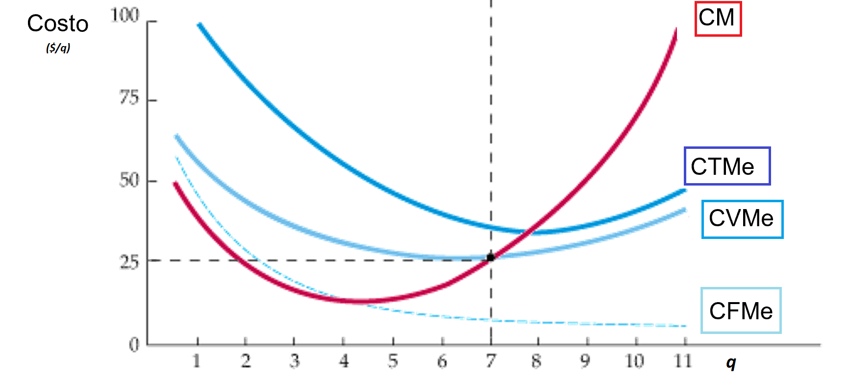 La cantidad \(q\) asociada al mínimo CMe se puede obtener a partir de resolver:
