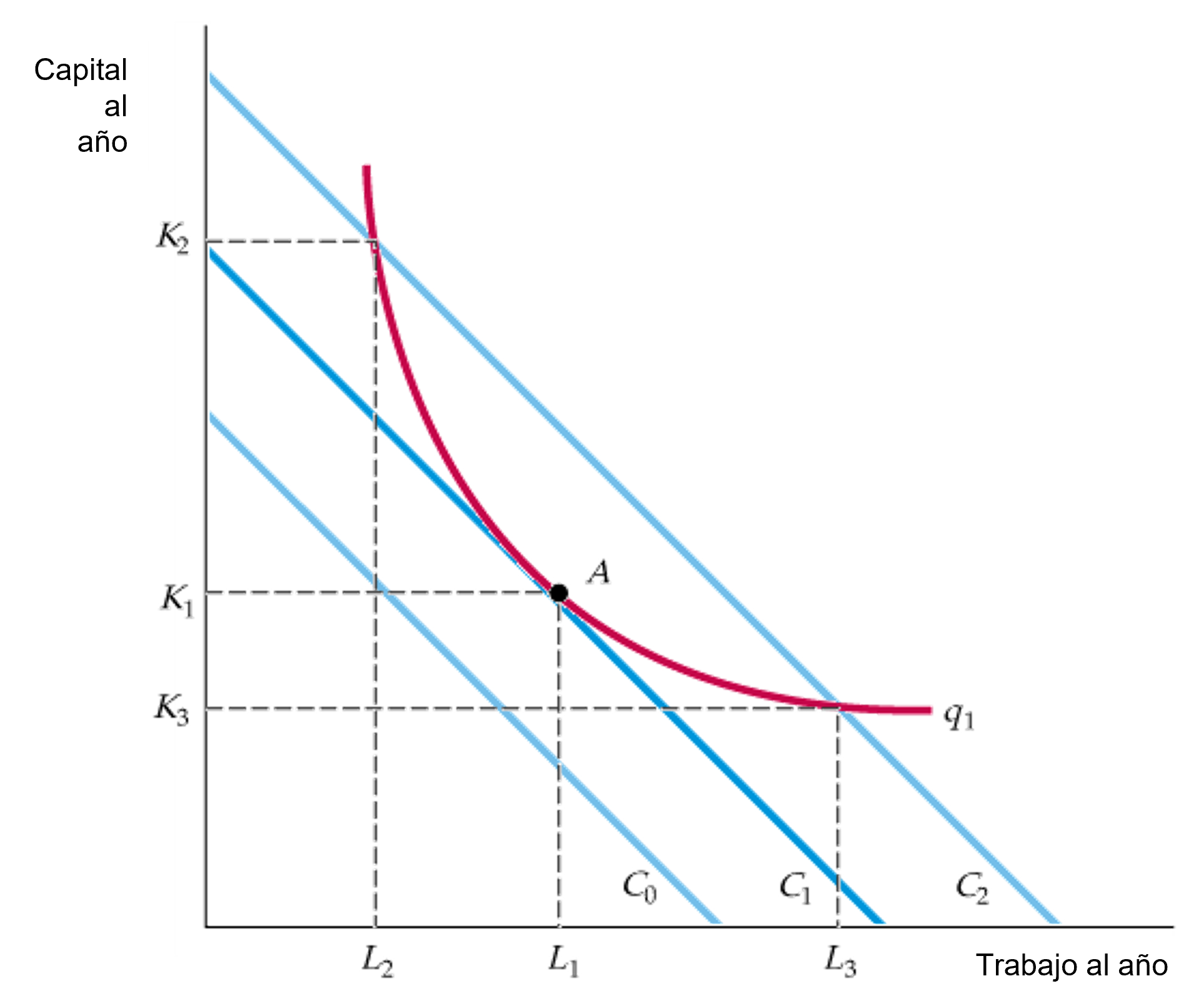 Figura: La obtención de un determinado nivel de produción con costo mínimo
