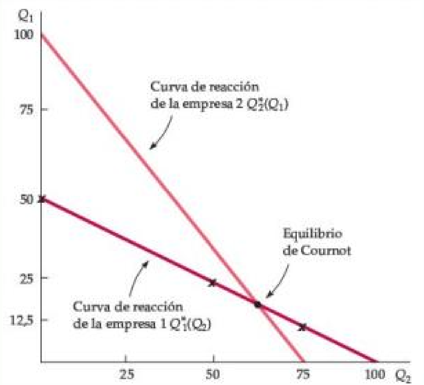 Figura: Curvas de reacción y equilibrio de Cournot