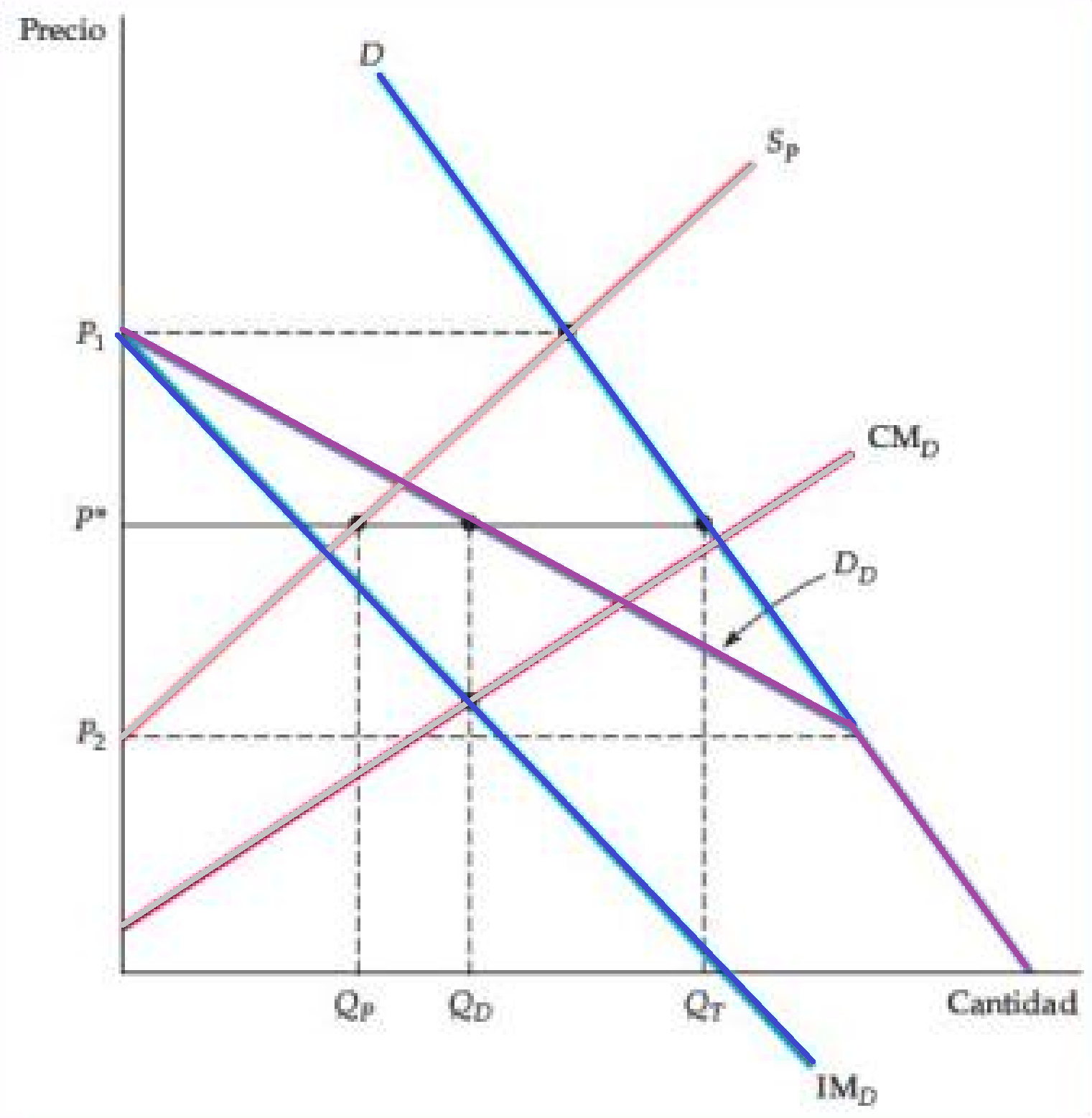 Figura: Comparación del equilibrio de competencia monopolística y competencia perfecta